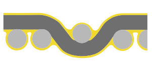 傳統造紙成型網(wǎng)輥側的PA和PET布置:                        新型Villforth VEXTREME?纖維造紙成型網(wǎng):