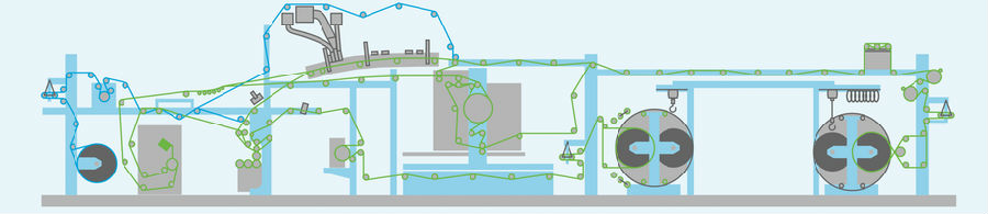 這條生產(chǎn)線(xiàn)為T(mén)ECHMA 1涂布試驗機提供了整個(gè)涂層工藝和系統組合。此外,該生產(chǎn)線(xiàn)設計用于度展示高速飛行拼接操作的機會(huì )。